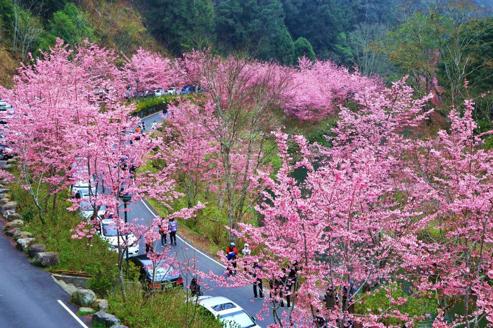 杉林溪櫻花品系繁多,除了原生種緋寒櫻,栽種最多的是粉紅椿寒櫻約1000棵及白色霧社櫻共約500棵、另外有大島櫻、普賢象櫻、枝垂櫻等。每年2~3月的賞花期,溪頭到杉林溪的公路沿線及杉林溪園區內到處可見。