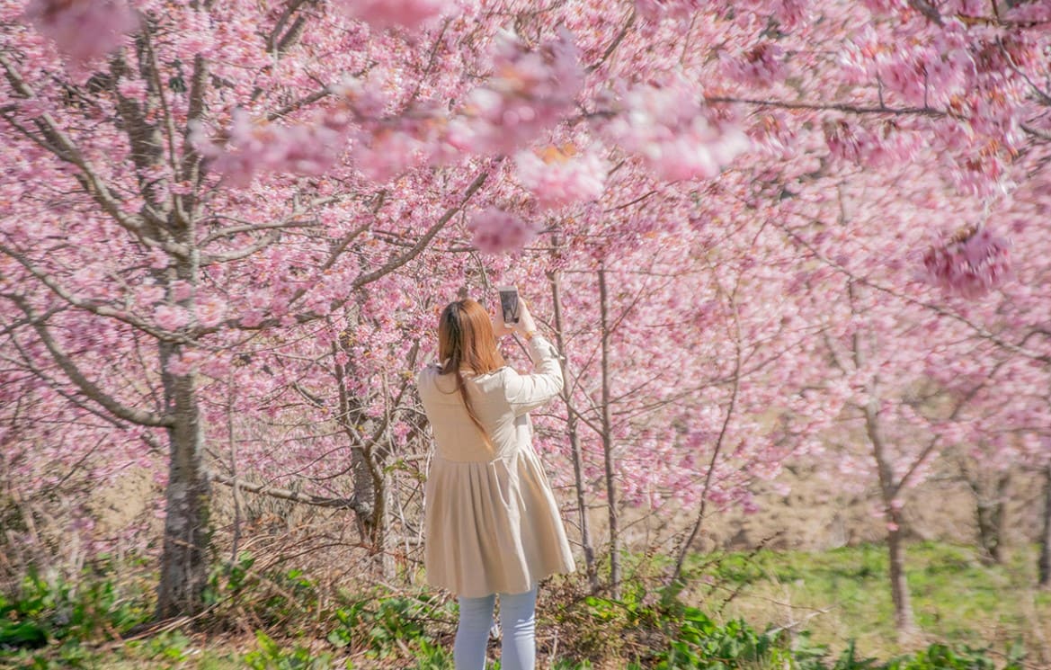 擁有2.1萬株櫻花,有10多種品種,又以紅粉佳人為主力,向來是國人最愛去的賞櫻景點。